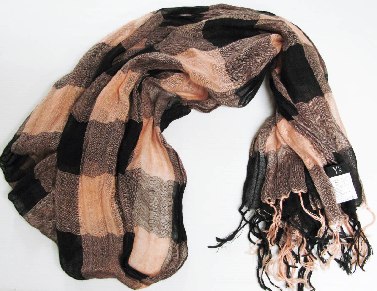 - 送料無料 Y's Yohji Yamamoto LINEN SCARF STOLE BLACK/PINK 展示品 新品 ワイズ ヨウジヤマモト 麻 大判 ストール スカーフ 黒/ピンク