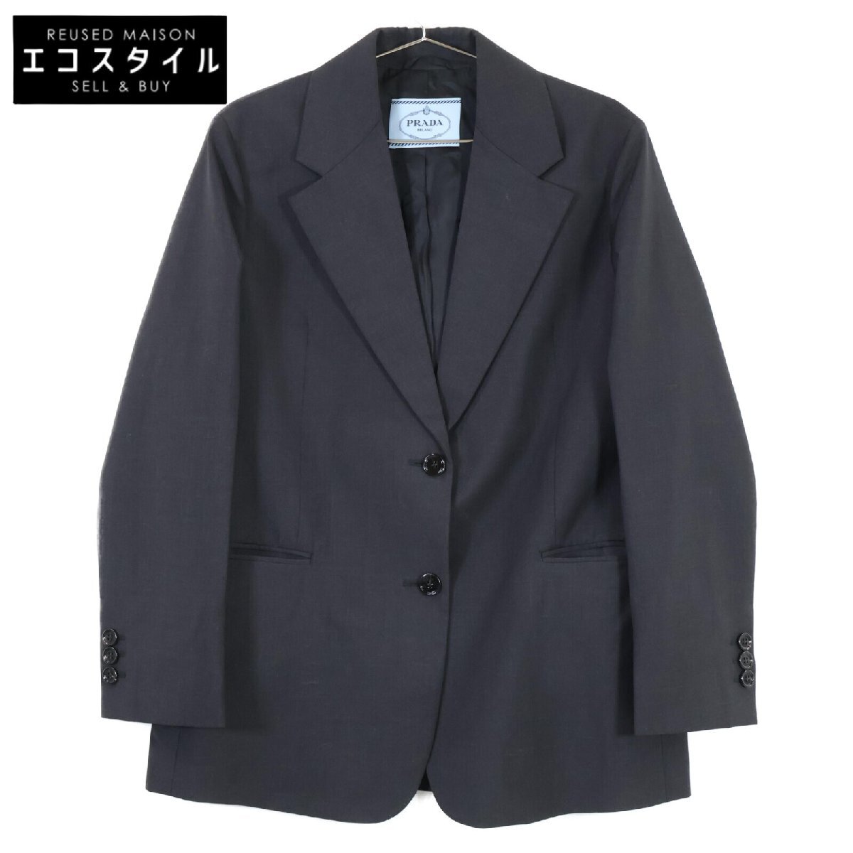 - 美品 国内正規 PRADA プラダ DNA961 S221 ヴァージンウール センターベント 2Bテーラード ジャケット 38 チャコールグレー レディース
