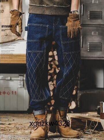 - 骨太ワークウェア レトロインディゴ ダブルニー ワーク アメカジ デニム パンツ サイズM-5XL ヴィンテージ 大きいサイズ