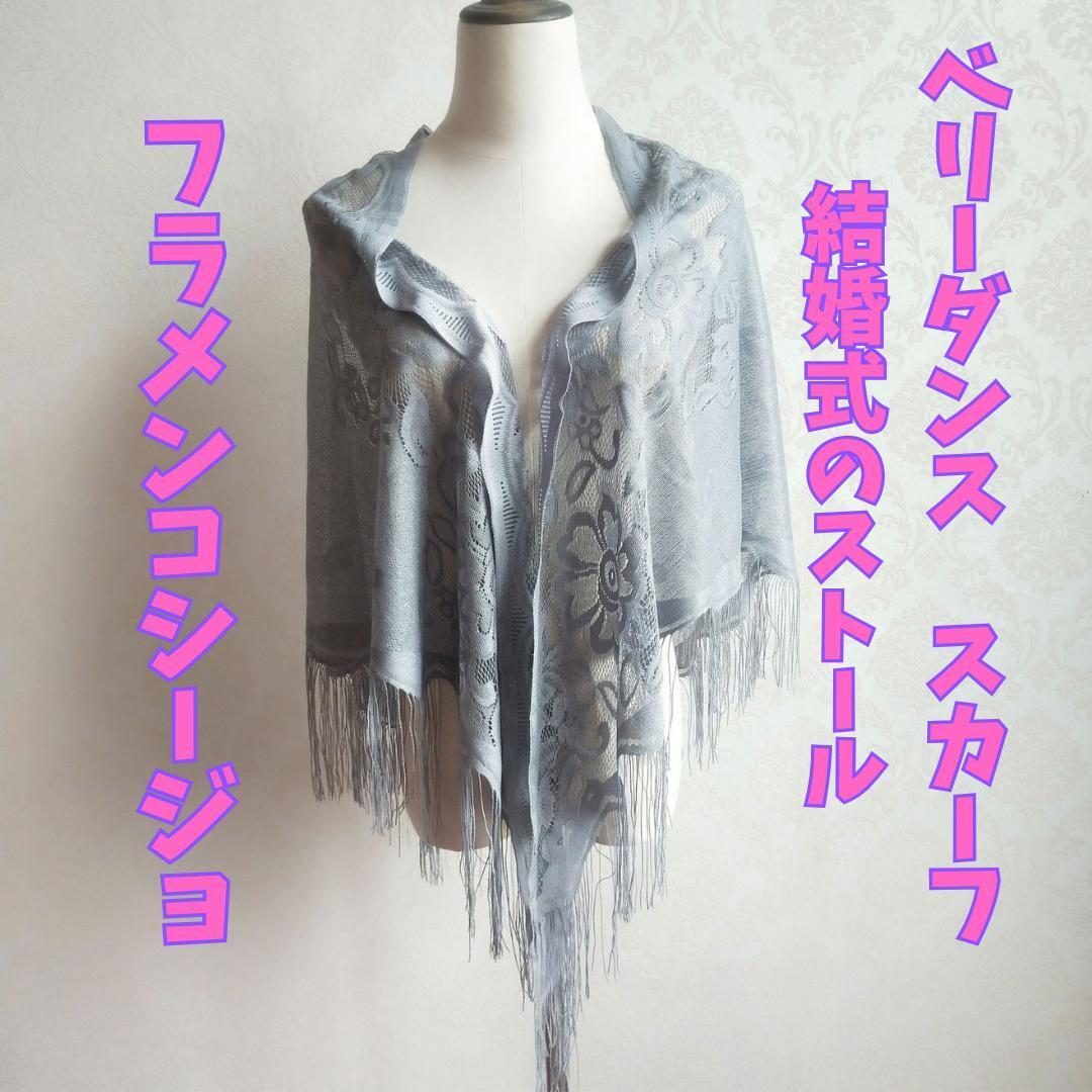 - フラメンコ シージョ ベリーダンス ヒップスカーフ グレー レース1112