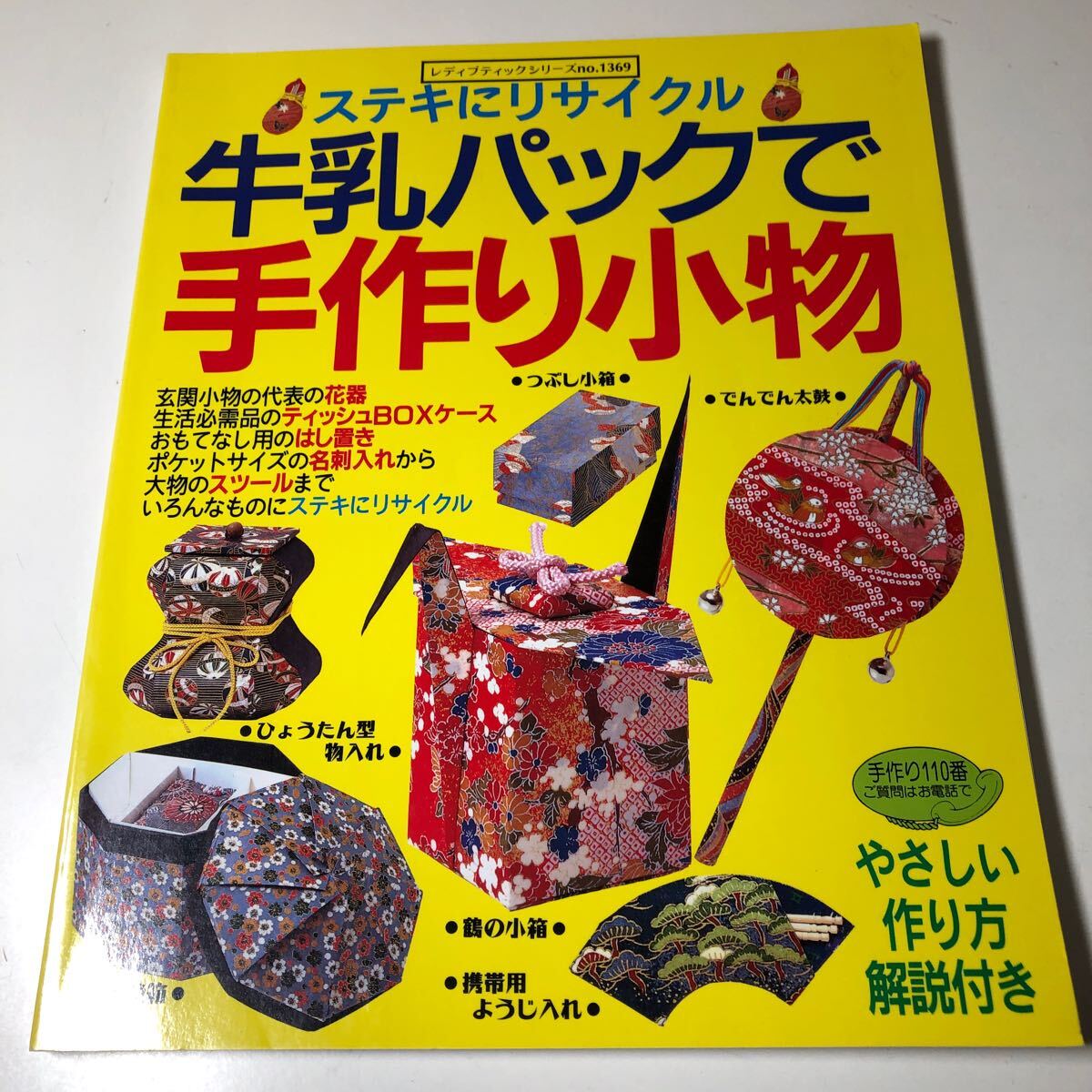 > M2b-176 ステキにリサイクル牛乳パックで手作り小物 レディブティックシリーズ 1369 つぶし小箱 でんでん太鼓 鶴の小箱 携帯用ようじ入れ