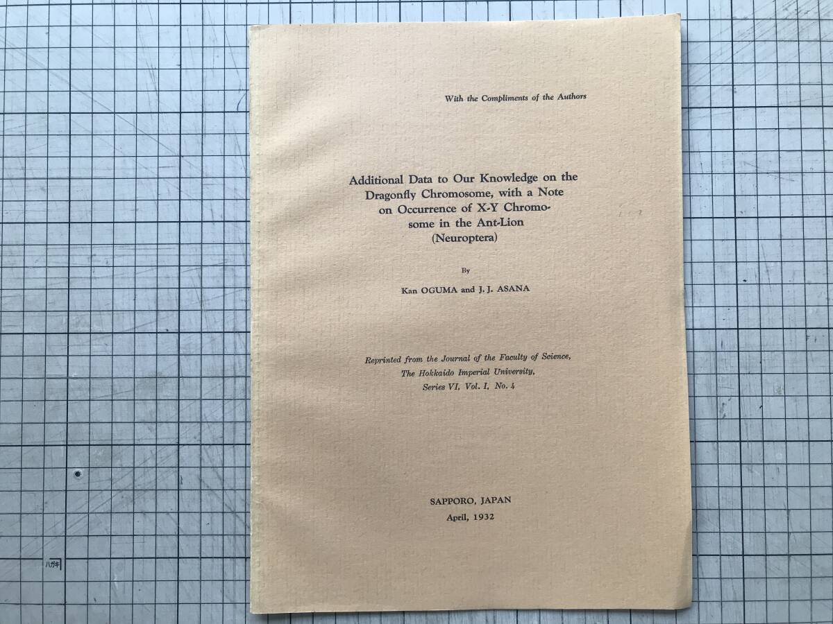 > 『Additional Data to Our Knowledge on the Dragonfly Chromosome, with a Note on ~ 別刷』小熊捍 他 1932年刊 ※札幌 他 00305