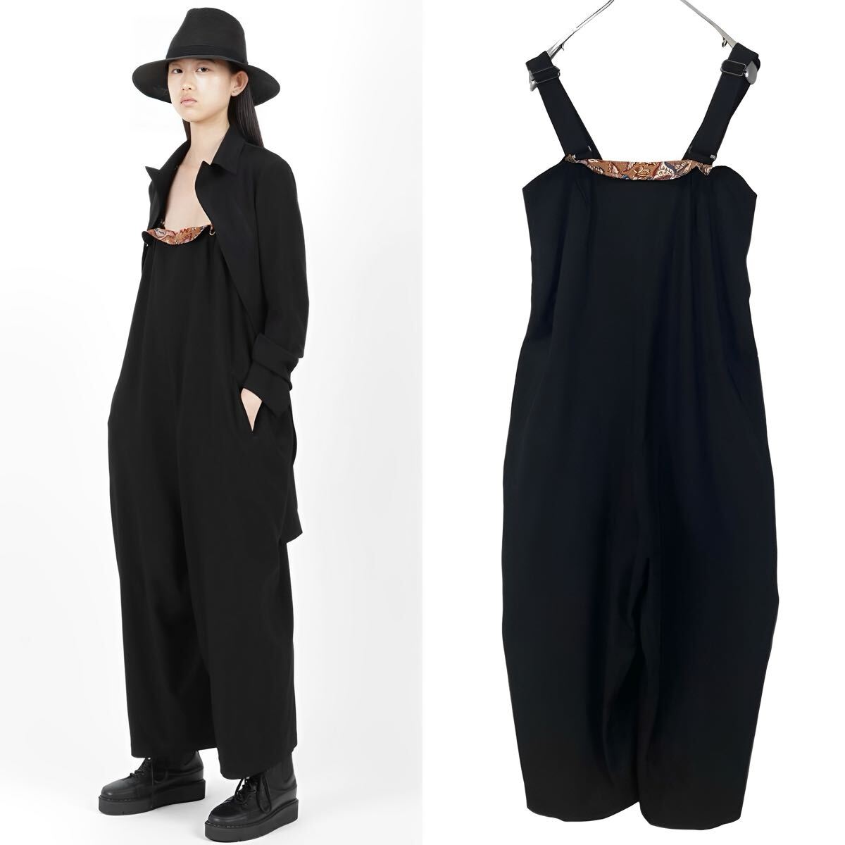 - Y's INDIAN COTTON PRINT COMBI JUMPSUIT 黒