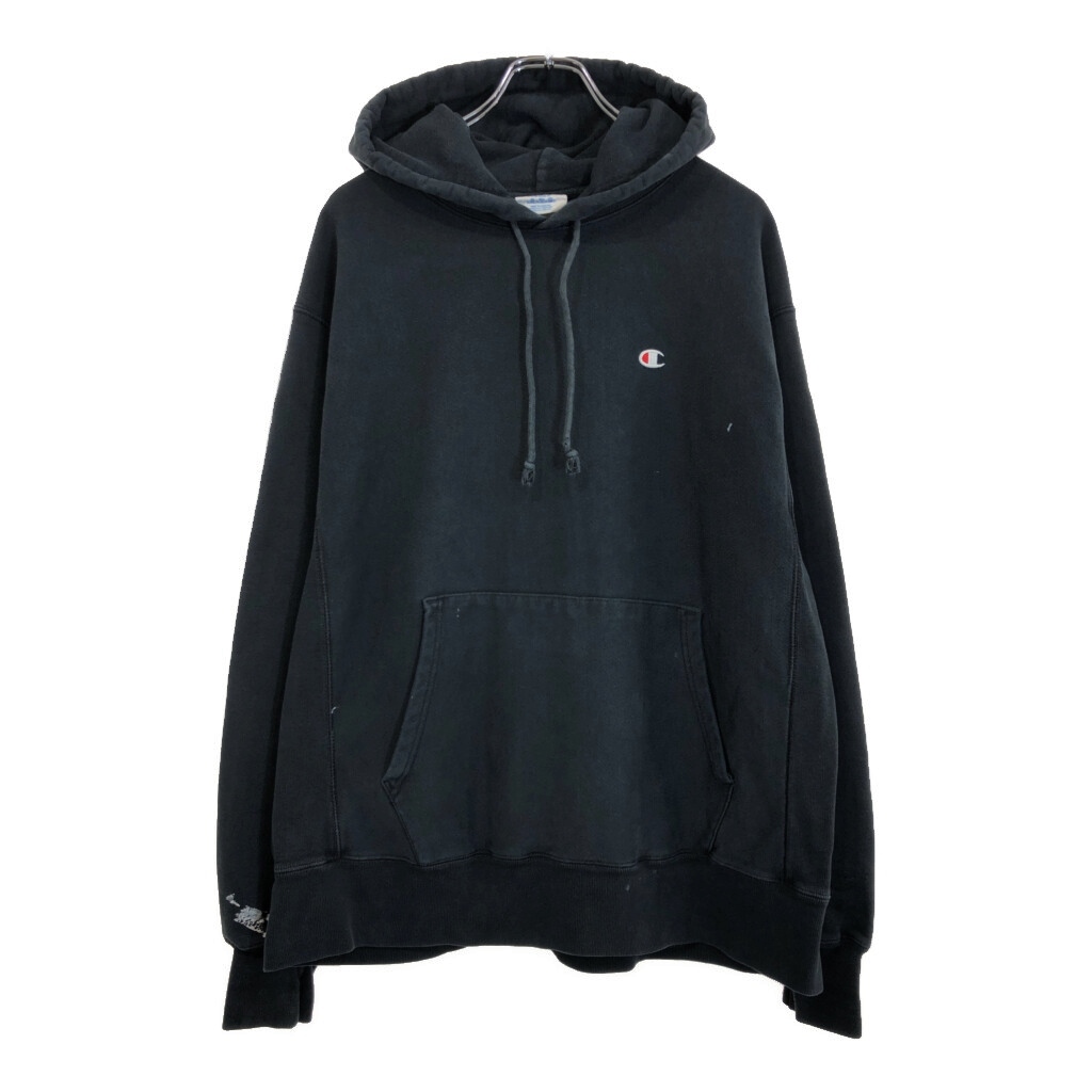 > Champion チャンピオン ワンポイントロゴ REVERSE WEAVE リバースウィーブ パーカー ペンキ ブラック(メンズ L)中古 古着 U5992
