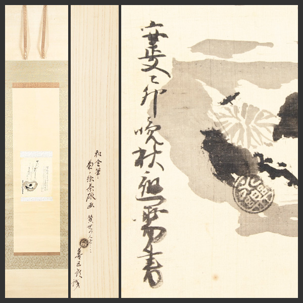 - ★【古美味】十二代永楽善五郎(和全) 自筆画賛「世の人を…」菊ノ絵茶碗画 十七代善五郎識 軸装 茶道具 保証品 Bs2F