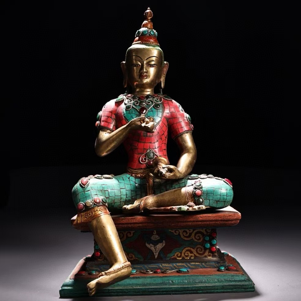 - 仏像 清代 旧蔵 チベット古寺 古銅彩色蒔絵金象嵌宝石蔵伝密宗金剛薩位一尊 銅製 銅琉金 唐物 收蔵品 時代物古置物 供養品 文房具 仏教6.26