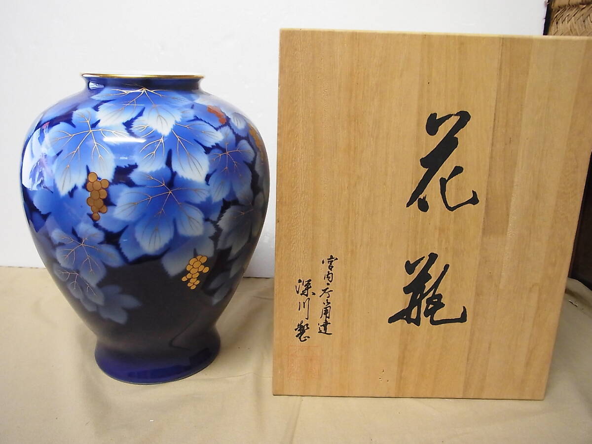 - 深川製磁☆ 宮内庁御用達 花瓶 深川製 呉須葡萄 ぶどう