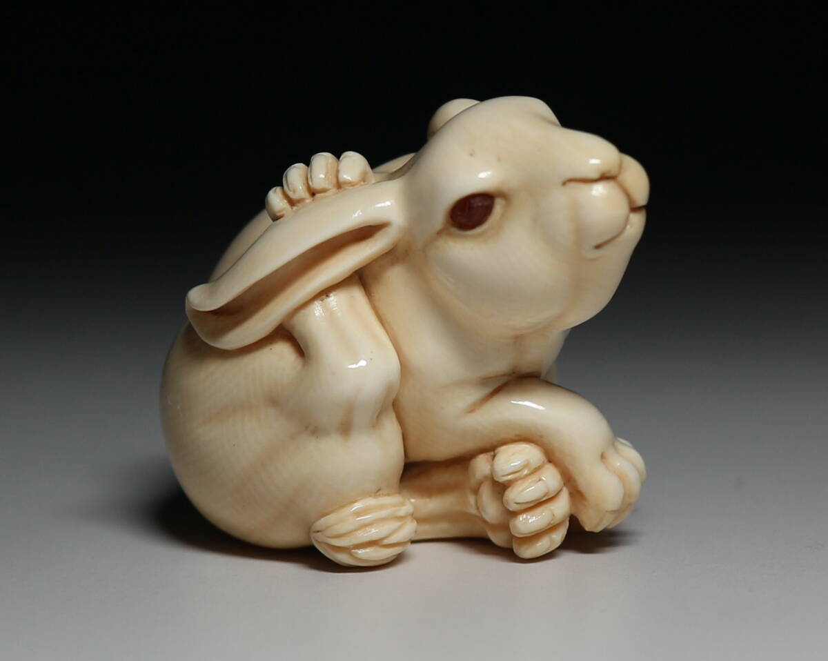 - 【心】k462 根付 白い兔 なんとも可愛い!