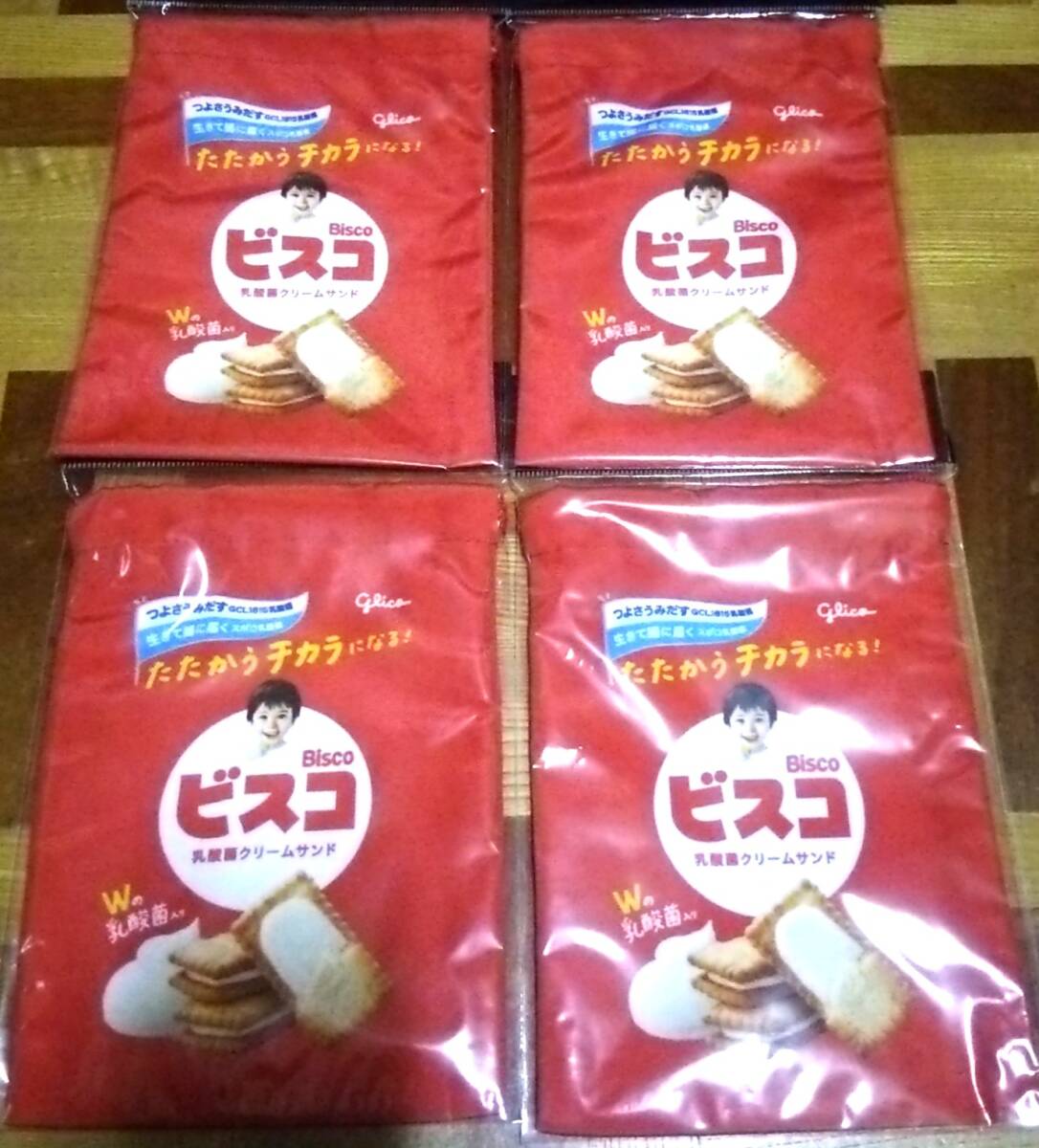 - 非売品★即決★ビスコ★オリジナル巾着★4枚セット★クリームサンド★グリコ★glico★②