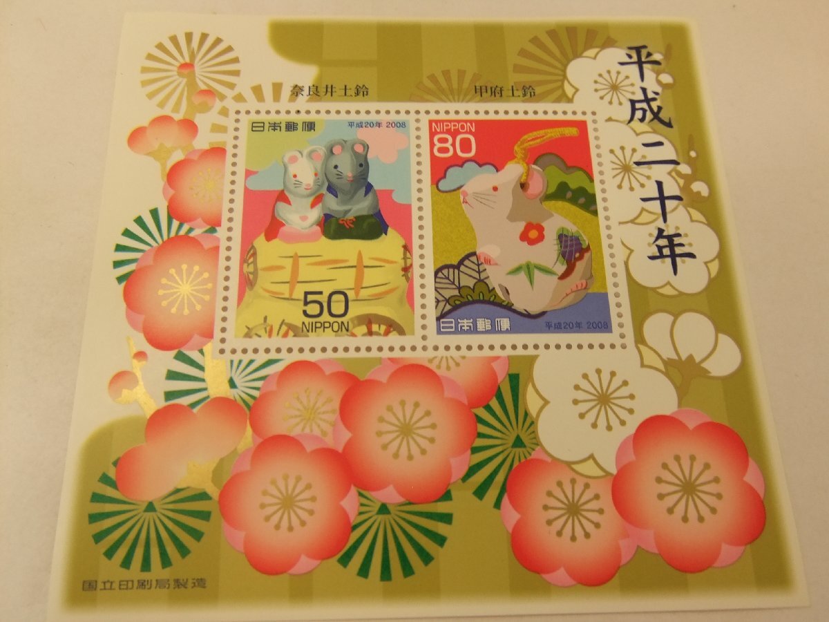 > 税込!未使用 お年玉切手シート 平成20年 奈良井土鈴 甲府土鈴 80円 50円 鼠