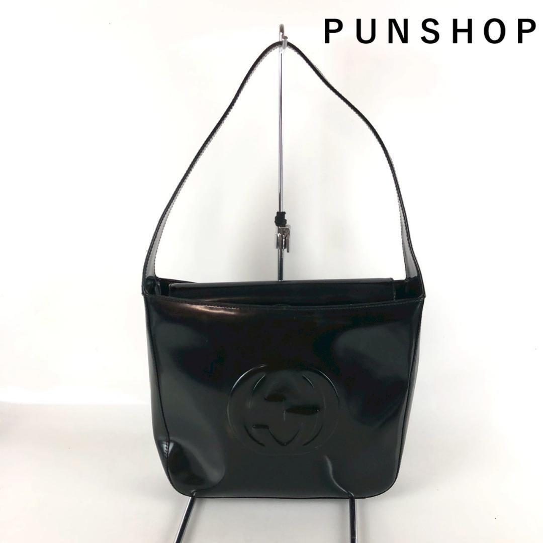 - GUCCI グッチ インターロッキングG エナメル ハンドバッグ ブラック おしゃれ 定番人気 送料無料 大人 収納抜群 おでかけ 人気商品 高級