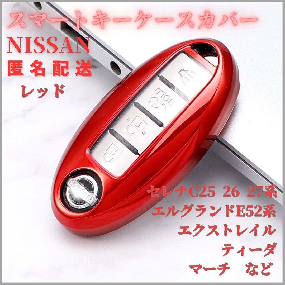 - キーケース日産NISSAN A型スマートキー セレナC系エルグランドE52エクストレイルノートマーチK13透明TPU赤