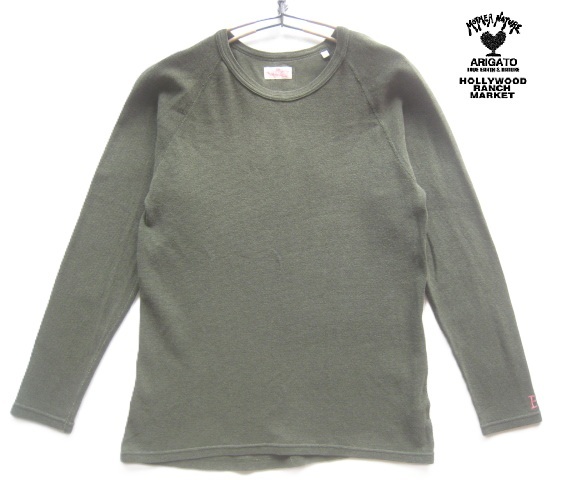 - 高級日本製!!ハリウッドランチマーケット H.R.MARKET ハリラン*Hロゴ刺繍 ストレッチフライス長袖Tシャツ 2 M カーキ 聖林公司
