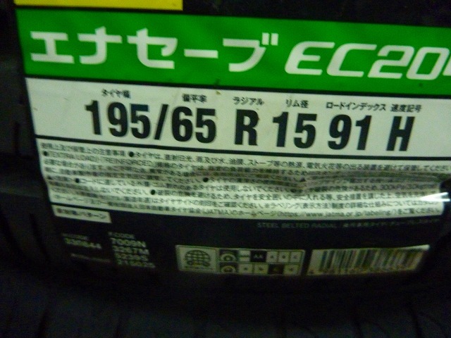 - 【送料無料】 夏タイヤ 2025年製 ダンロップ エナセーブEC204 195/65R15 4本セット税込¥55,800-