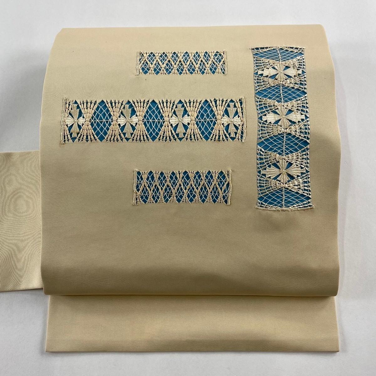 - 名古屋帯 秀品 幾何学模様 ベージュ 正絹 【中古】