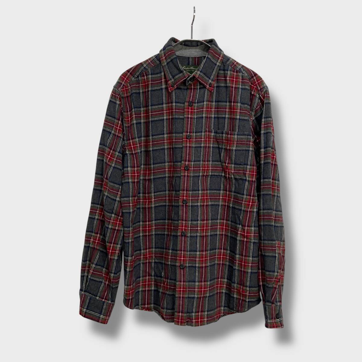 - 送料無料☆EddieBauer☆エディーバウアー☆チェック柄ネルシャツ☆ボタンダウン☆長袖シャツ☆グレー☆レッド☆M☆F25M