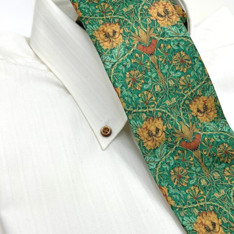 - メンズ ネクタイ 緑 グリーン 花柄 レトロ ヴィンテージ風 おしゃれ カジュアル スリム【color 18】