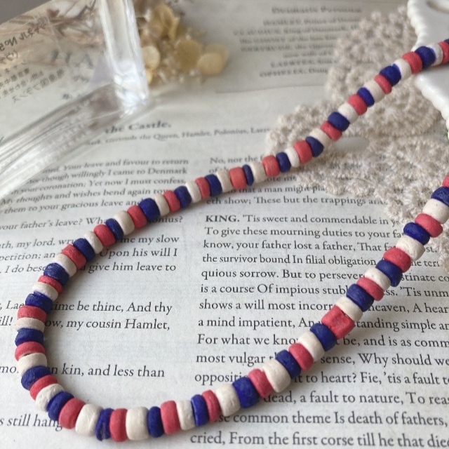 > ネックレス ショート ウッドビーズ ディスクビーズ 木製 天然 軽量☆vintage jewelry accessoriesR0658