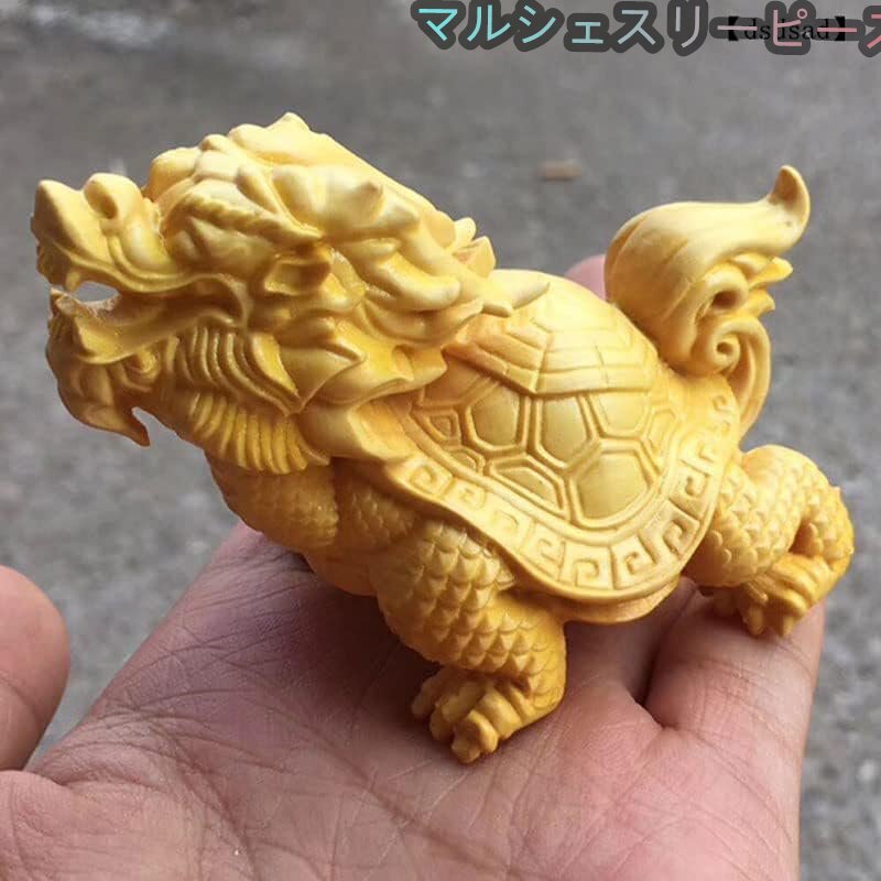 - 風水 龍亀(ロングイ)8.5cm 木彫り 置物 オブジェ 商売繁盛 開運グッズ 金運アップに 開運祈願 お守り 魔除け お礼 (桧木製)