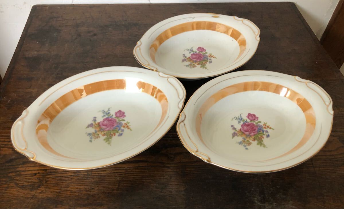 - 昭和レトロ カレー皿/楕皿/深皿/ 洋食器/ 花柄/金彩/ビンテージ