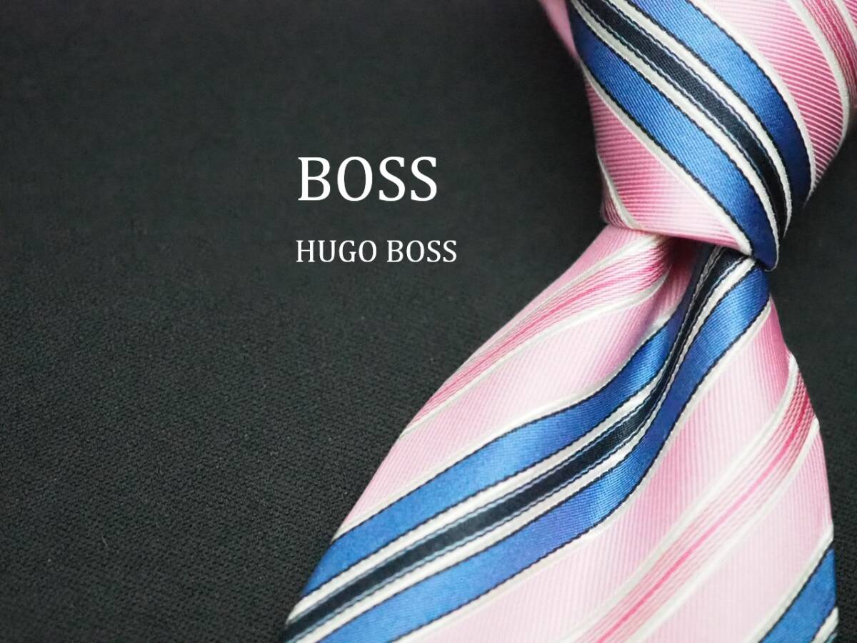 - 美品【HUGO BOSS ヒューゴ ボス】 E2776 ピンク系 SILK ブランド ネクタイ 古着 良品