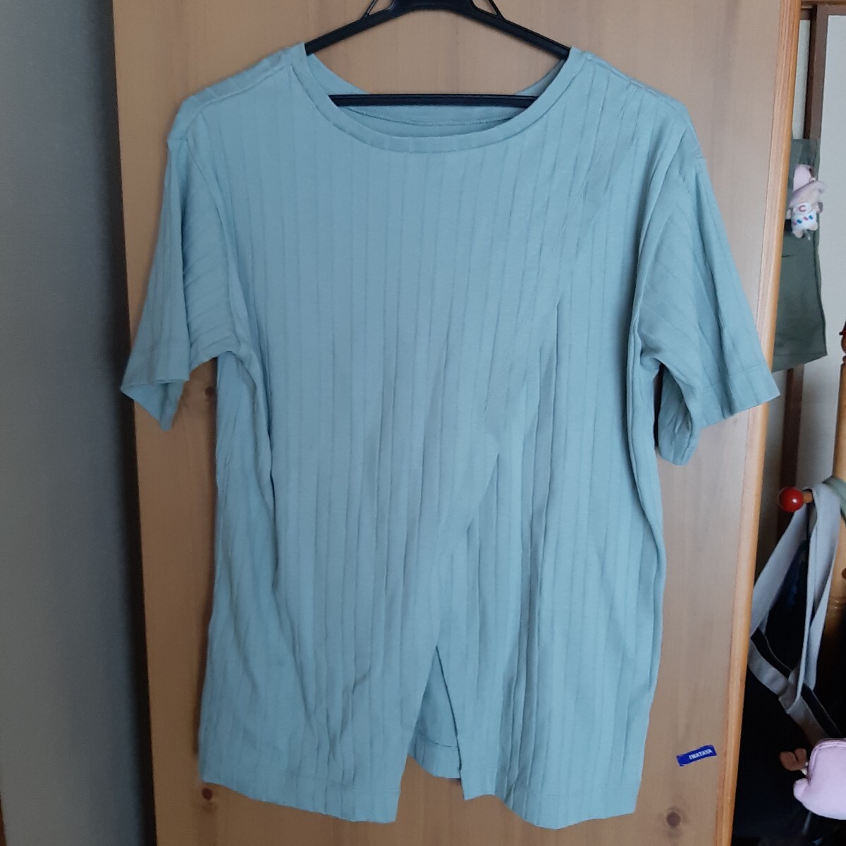 - ★最終処分特価★*ベルメゾン*水色のストライプ地柄のカシュクール風カットソー*