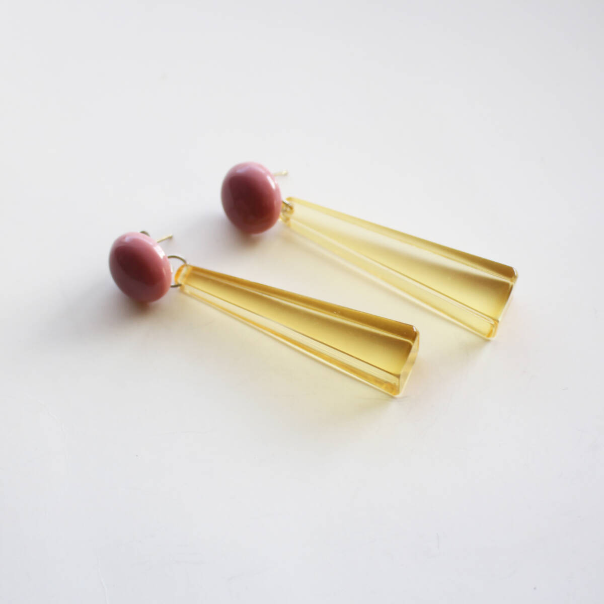 - ビームス購入 クリア両耳ピアス BEAMS イエロー×ピンク