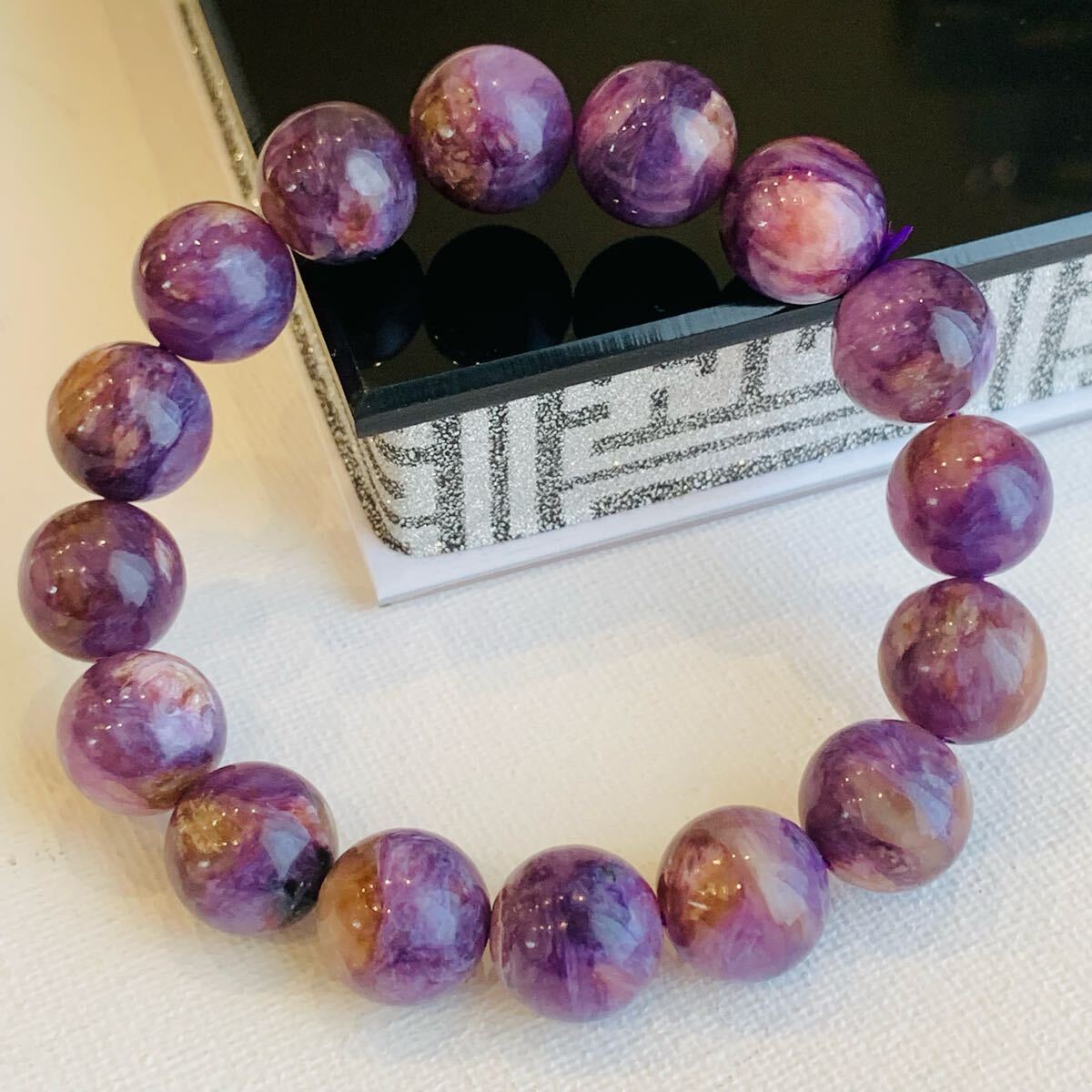 > チャロアイト ブレスレット 天然石 13㍉珠 17cm 【K618】マーブル色 48g パワーストーン ブレスレット