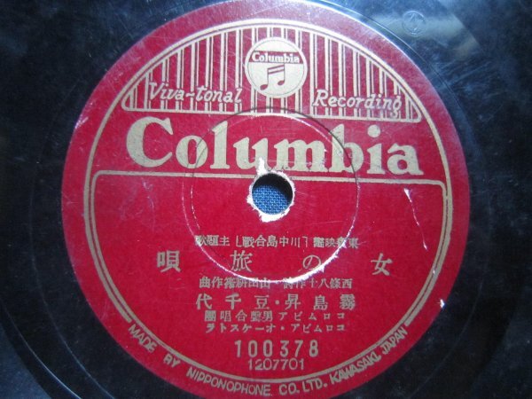 - コロムビア流行歌SP盤498★霧島昇豆千代/女の旅歌★二葉あき子/千曲の朝霧★SPレコード