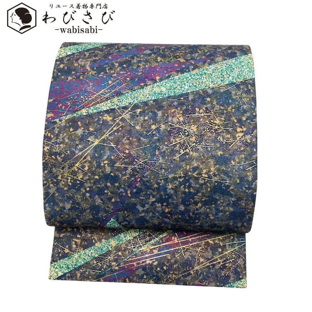 > 袋帯 だるま紬 モダンな染め模様 叩き染 金彩 O-3520 着物 きもの kimono 和服 和装 中古 リサイクル着物 【送料無料】
