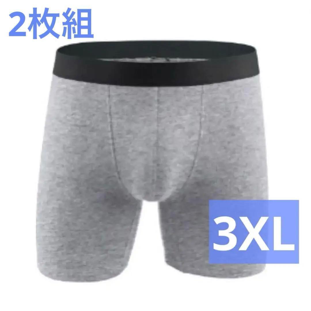 - 【グレー/3XL】2枚組 ボクサーパンツ 綿 cotton 吸水速乾 メンズ