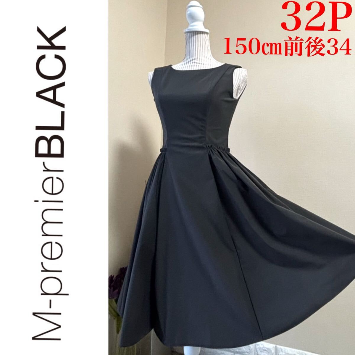 > 美品!エムプルミエブラック M-premier BLACK ワンピース 32P 小さいサイズ 150前後 5号 34サイズ向け ミモレ丈 ワンピース