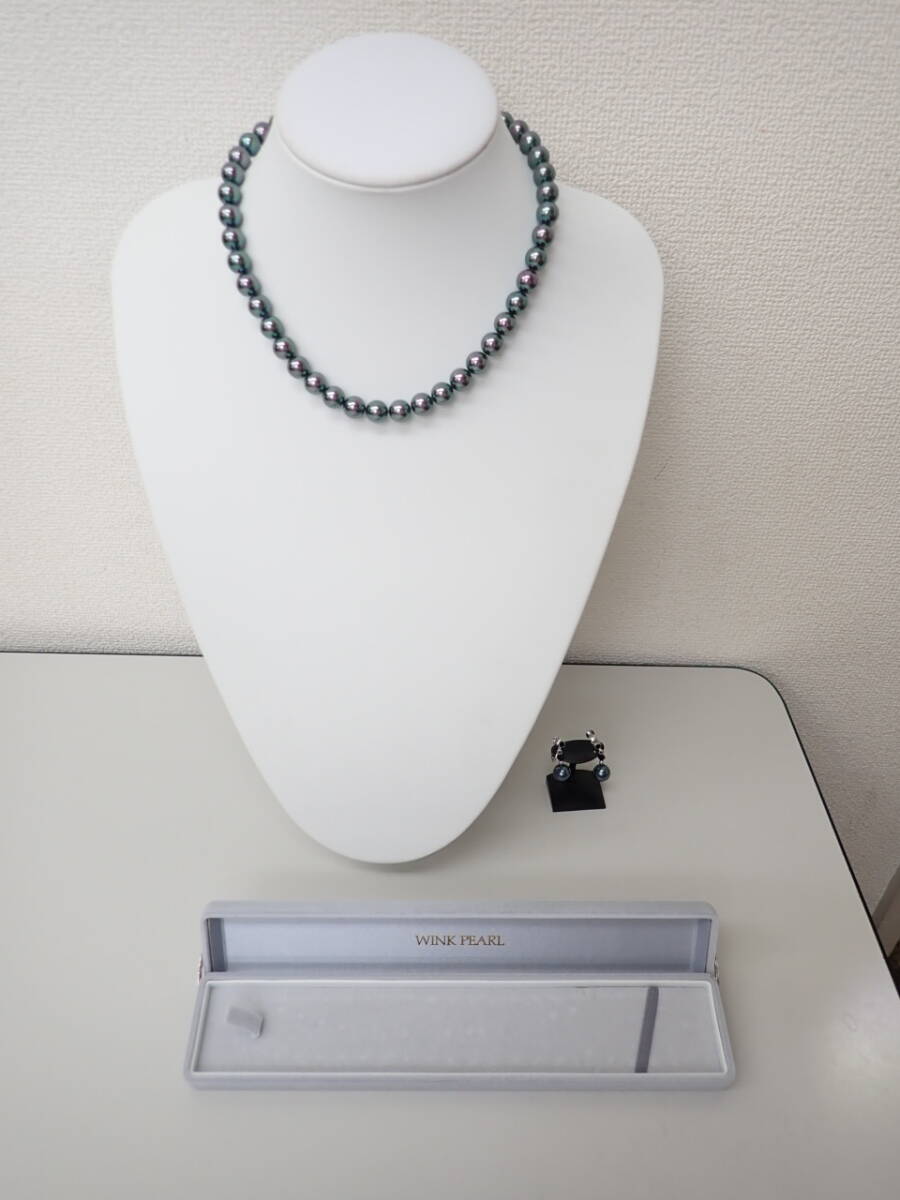 - 132-; WINK PEARL ウインク パール 人工パール 黒色系 ネックレス イヤリング 元箱 ★
