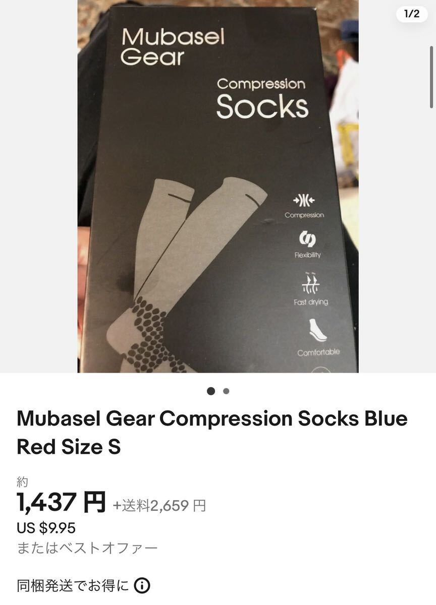 - 1足 ムバセル ギア 圧縮ソックス サイズ M グレー/レッド 新品