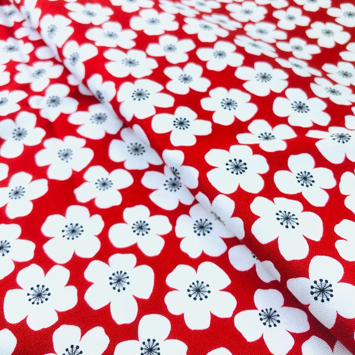 - 日本製 1m オックス 北欧風 お花柄 コットン 生地 はぎれ あか