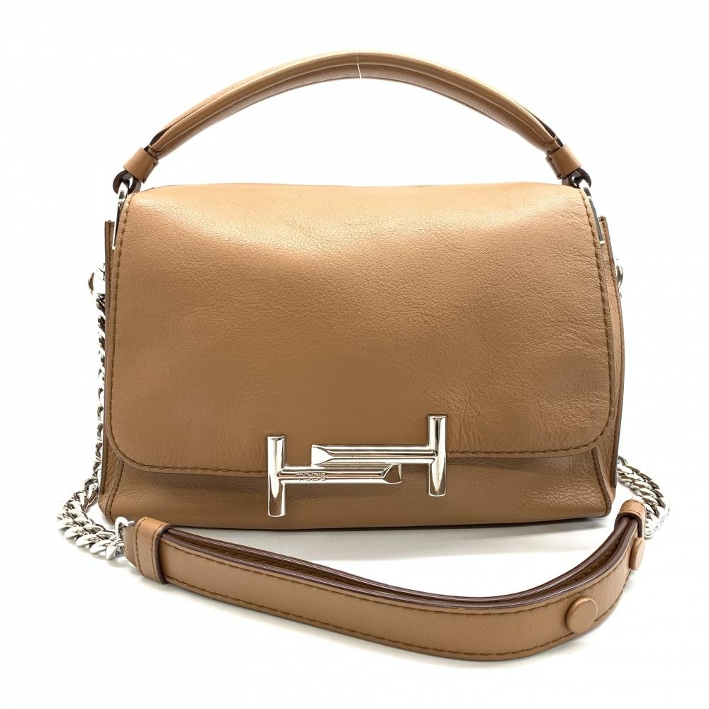 > TODS トッズ ダブルT 2WAYショルダーバッグ ハンドバッグ レザー ブラウン シルバー金具 レディース 管理RT43121