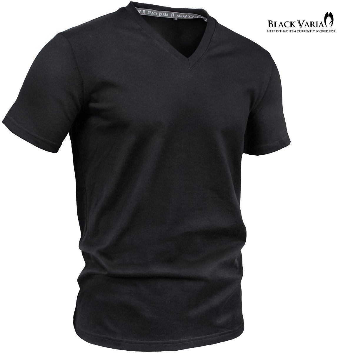> 241301-bk BLACK VARIA Tシャツ 半袖 Vネック 無地 綿 コットン シンプル トップス mens ファッション メンズ(ブラック黒) M 細身 VTシャツ