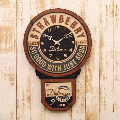 > ★アンティーク看板のような壁掛け時計!レジェクションクロック ビンテージ カフェクロック(ストロベリー) ウォールクロック 壁掛け時計