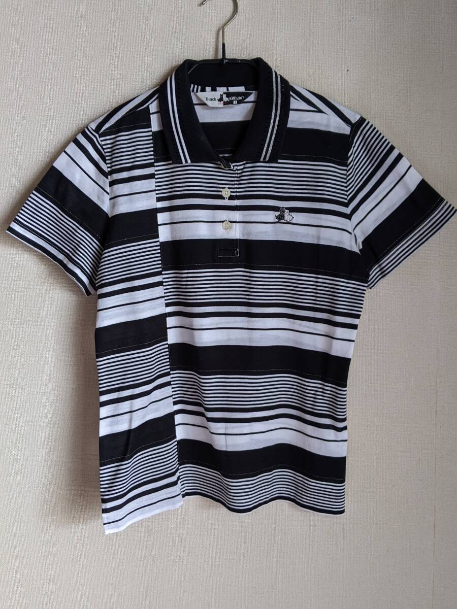 - ブラック&ホワイト Black&White レディース 半袖ポロシャツ 黒×白 SIZE 1(M)