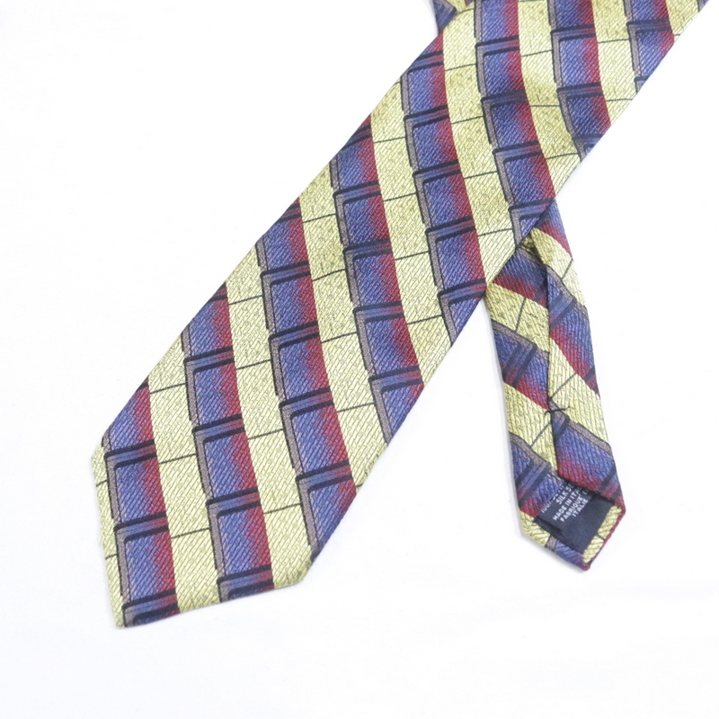 - NT905 90sビンテージ GIORGIOARMANI ネクタイ■1990年代製 イエロー シルク アルマーニ ストライプ アンティーク 雑貨 アクセサリー 古着