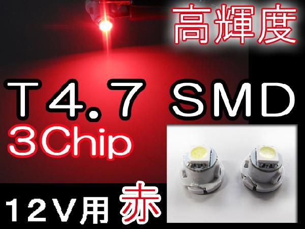 - 【互換品】T4.7 / 3chip SMD / 赤 / 2個セット/ 超高輝度 / LED / 12V