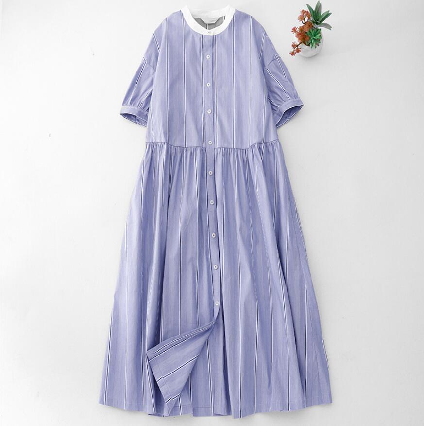 - 新入荷~上質 シャツワンピース 夏 半袖 ロング マキシ丈 レディース ボーダー柄 ミモレ丈 ワンピース 気質 通勤 ロングワンピース