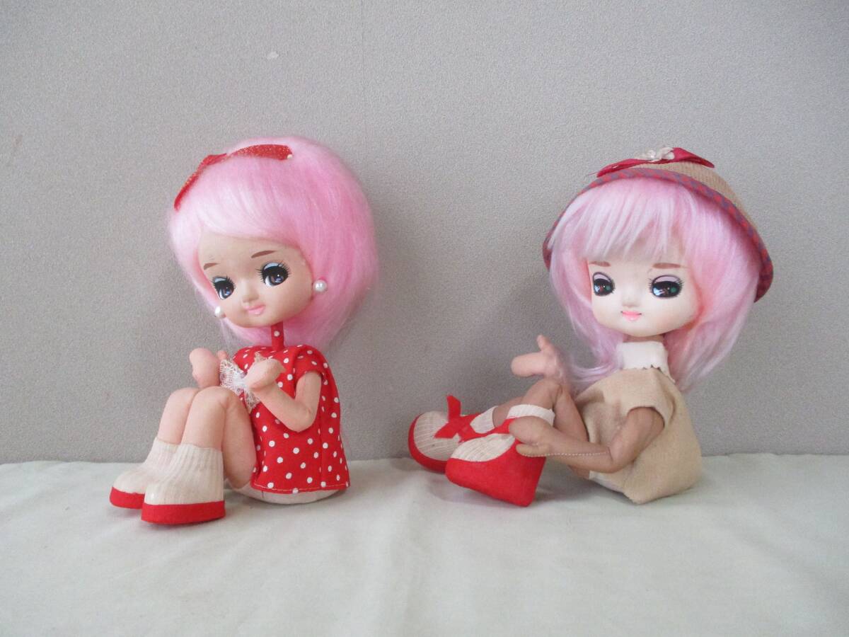 - 昭和レトロ人形(2体セット)「アンティークドール・おすわり人形・ピンク髪」: 玩具・人形・置物