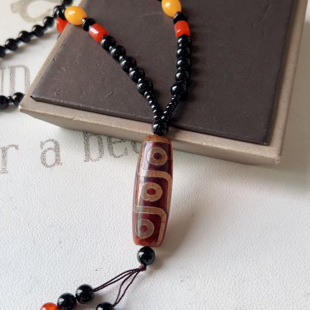 > ◇九目天珠+赤瑪瑙2粒◇瑪瑙◇ネックレス◇ペンダント◇天然石◇パワーストーン◇巾着袋付き◇プレゼントにも 030P63013
