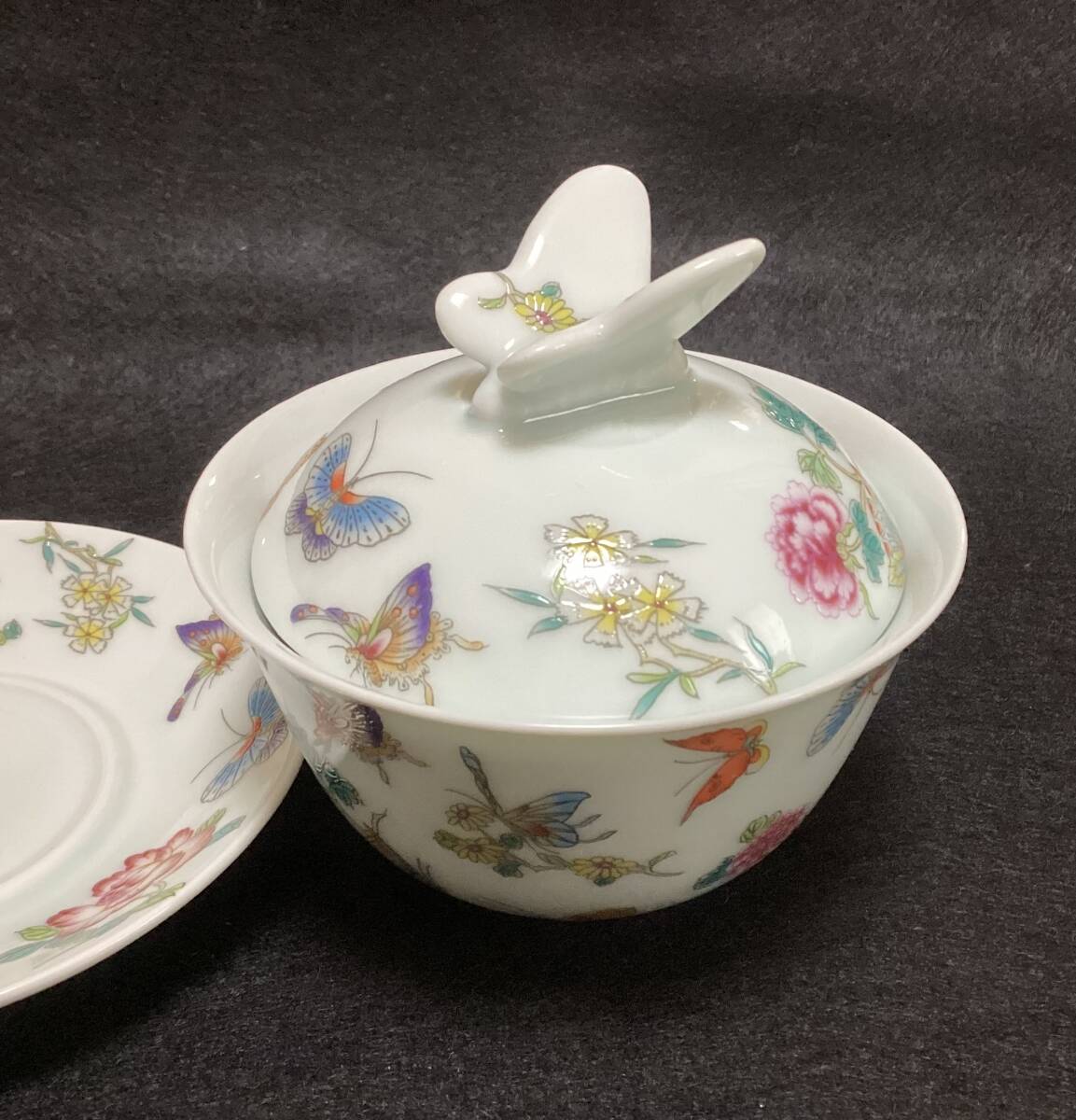 - 蓋碗『蝶恋花』蝶と花の茶碗(中国・京隆堂)茶器(白系)