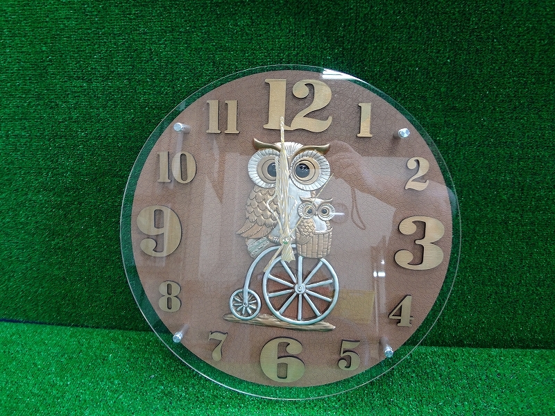 - Kケお0021■ジャンク品■電波掛時計 HD-1688■フクロウ ふくろう 梟 自転車に乗るフクロウ 壁掛け時計 時計 かべ掛け インテリア