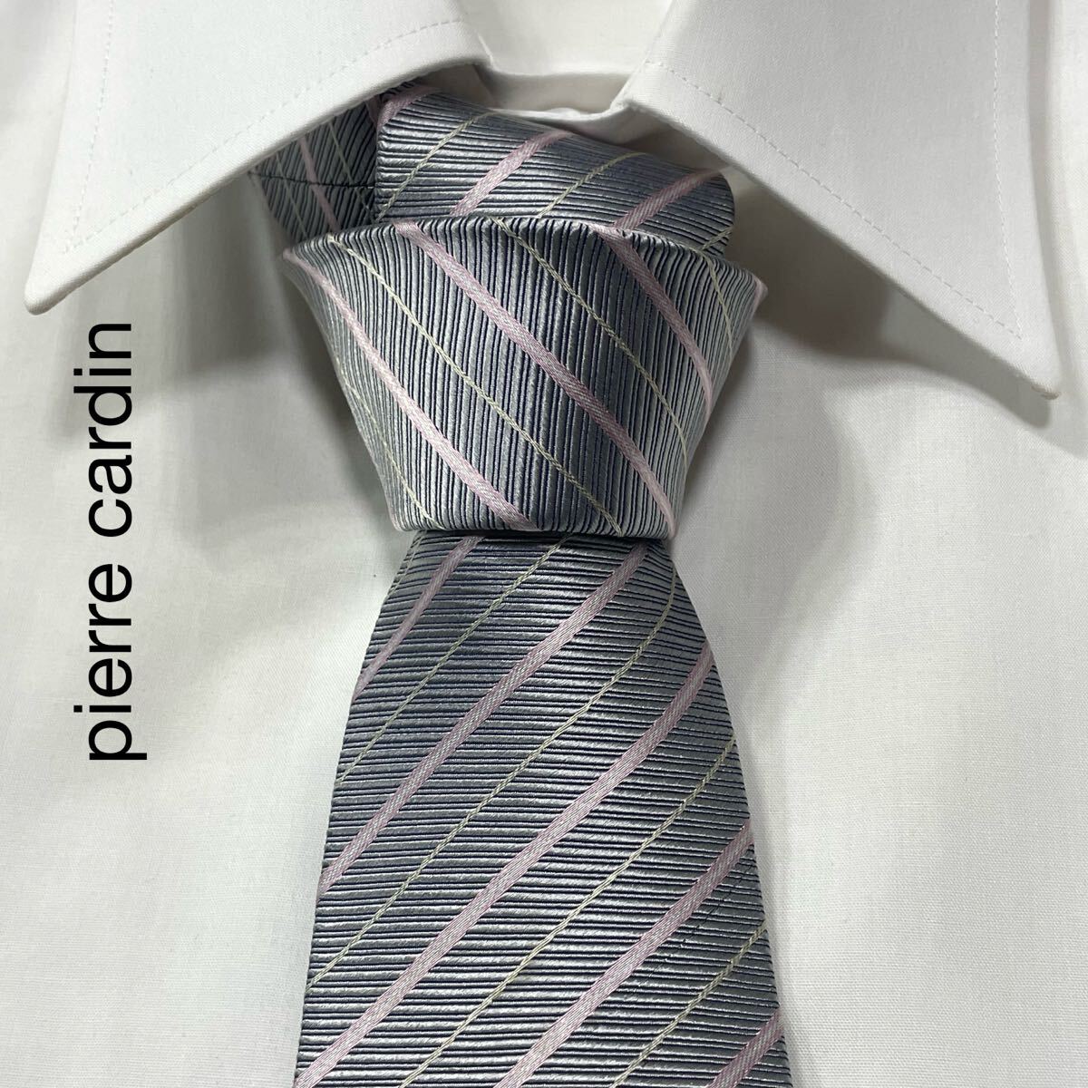 > pierre cardin ピエールカルダン レジメンタル ストライプ シルク ネクタイ イタリア製 グレー ピンク ベージュ TG2558