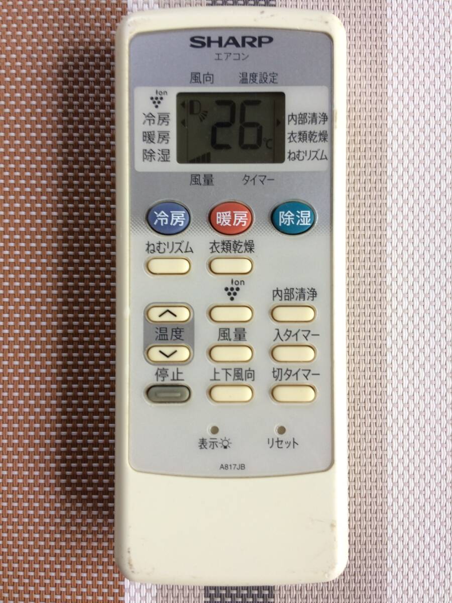 - 黄ばみあり★傷あり★送料無料★SHARP★シャープ★純正★エアコン用リモコン★A817JB★中古★動作品★返金保証あり★