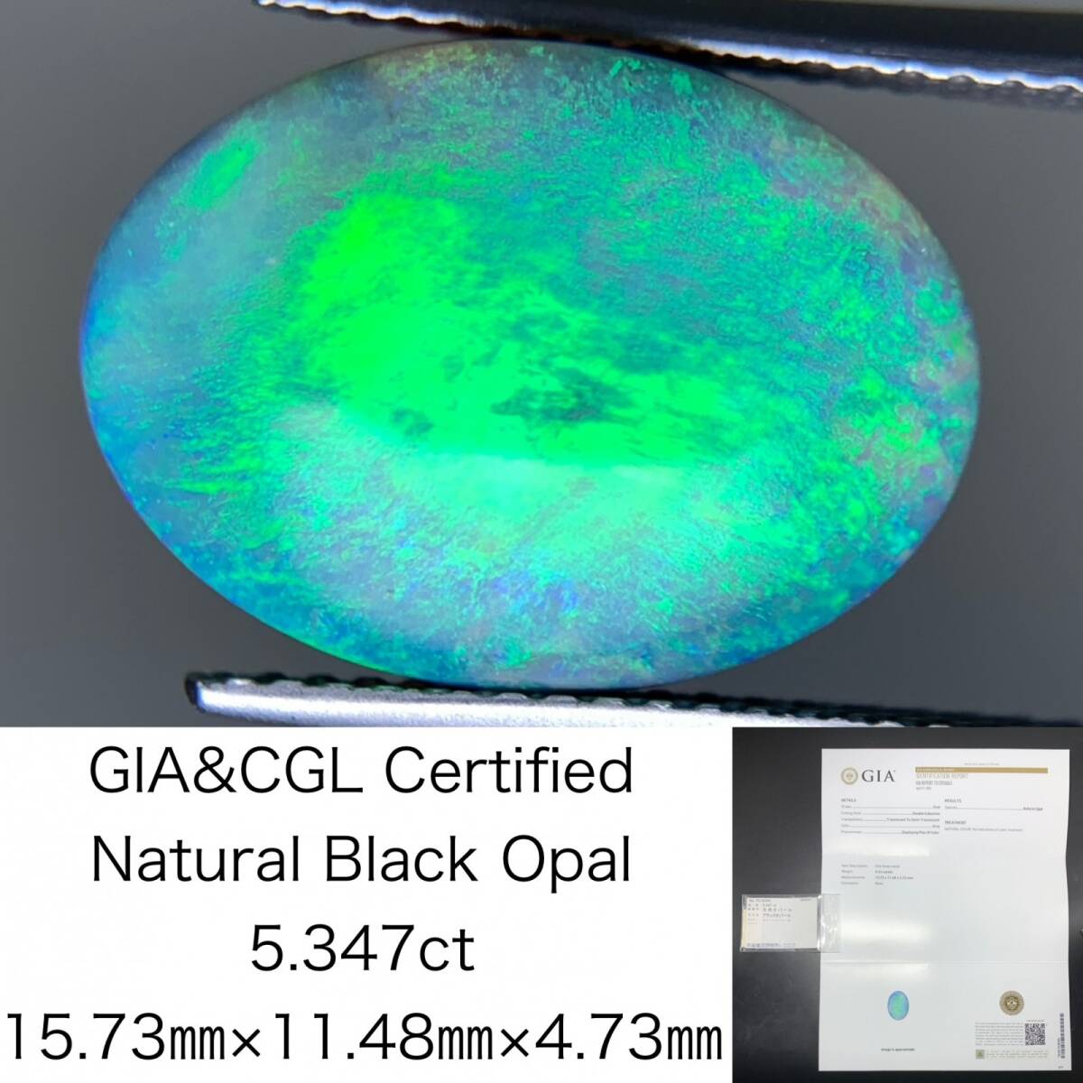 - ブラックオパール 天然 5.347ct GIA宝石鑑別書&中央宝石ソーティング付き 15.73×11.48×4.73 天然 ルース( 裸石 ) 4180Y