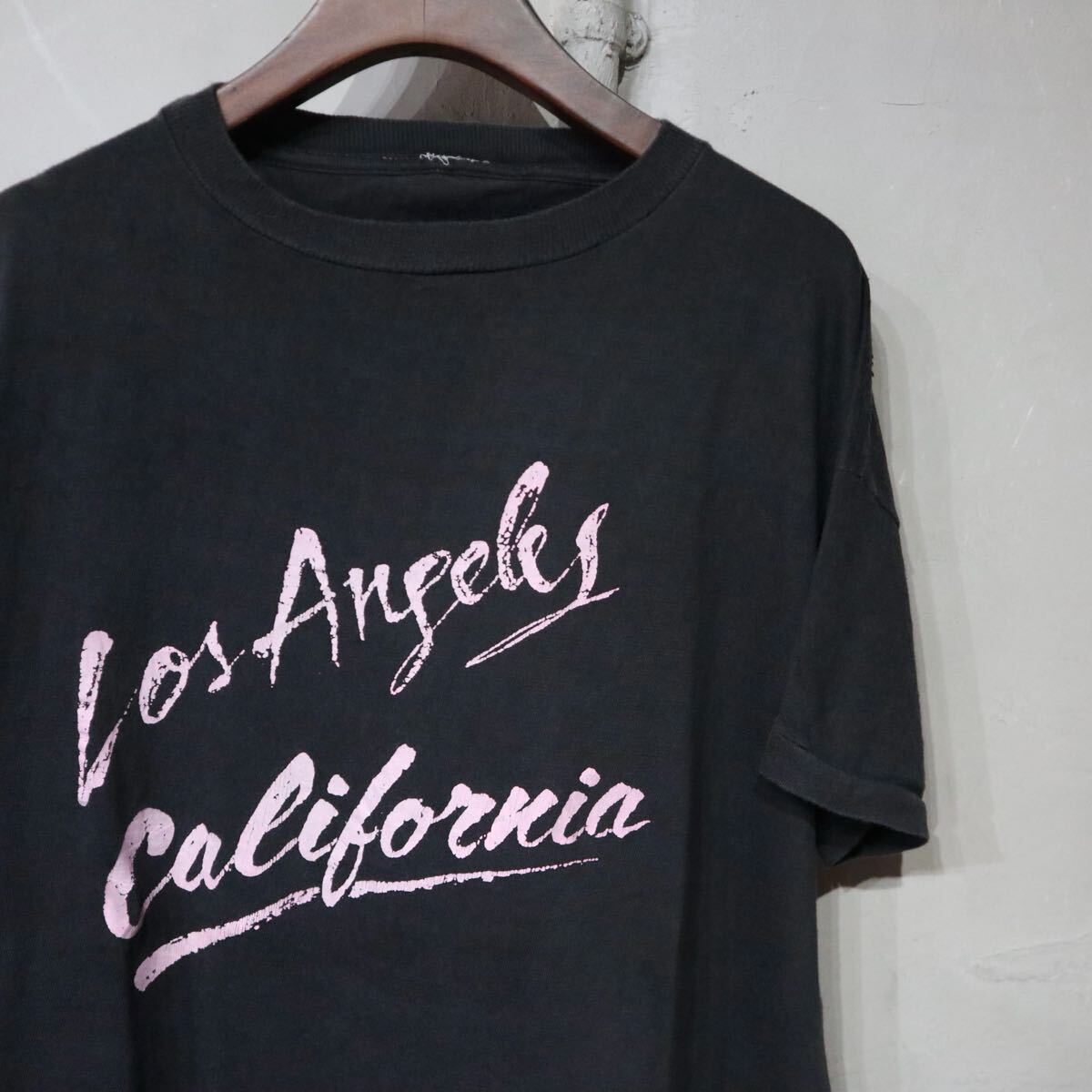 > 【即決】80-90s Los Angeles ロサンゼルス プリント Tシャツ ブラック ピンク 黒 シングルステッチ 古着 ヴィンテージ ビンテージ